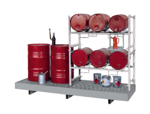"longDescription": "<h2>Aftapstelling en stapelframe</h2><strong>direct te gebruiken aanbiedingen</strong><br><ul><li>Geschikt voor waterverontreinigende en ontvlambare stoffen</li><li><strong>corrosiewerend en stabiel</strong> - frame van verzinkt staal</li><li><strong>gemakkelijk transport</strong> - vanaf 1390 mm breed met vorksloffen</li></ul><br><h3>De keuze is aan jou:</h3><ul><li><strong>praktische complete aanbiedingen of individuele aanbiedingen</strong> - met vastgelaste vatensteunen of roosterlegborden</li><li><strong>bijpassende opvangbakken</strong> - naar keuze als uitschuifbare, vaste of combi-opvangbak</li></ul><br><strong>Staande opvangbak</strong><br><ul><li><strong>volledig opvangvolume te benutten</strong> - met uitneembaar en vuurverzinkt rooster</li><li><strong>staat stevig</strong> - rooster met rand, waarop de stapelkast wordt vastgeschroefd</li><li><strong>geschikt voor transport met vorkheftruck</strong> door praktische onderrijdhoogte</li></ul><br><strong>Bepalingen!</strong><br>Model van de opvangbakken officieel toegelaten. Te gebruiken voor aquatoxische, ontvlambare (vlampunt > 55°C) en agressieve stoffen voor opslag onder dak.<br>",