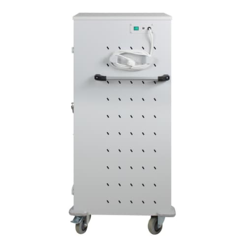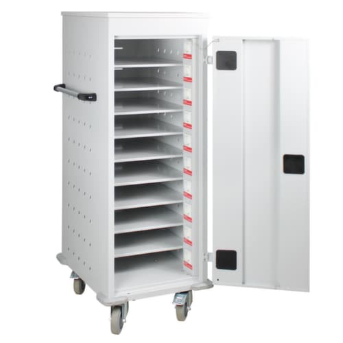 "metaDescription": "Laptopwagen - van staal in RAL 7035, met 4 zwenkwielen, met maximaal 30 vakken",