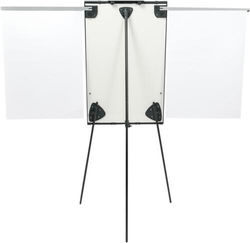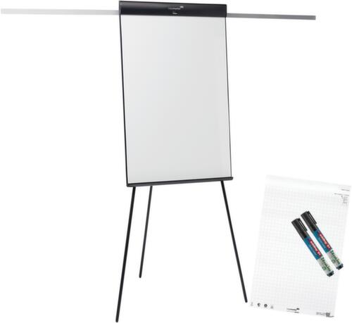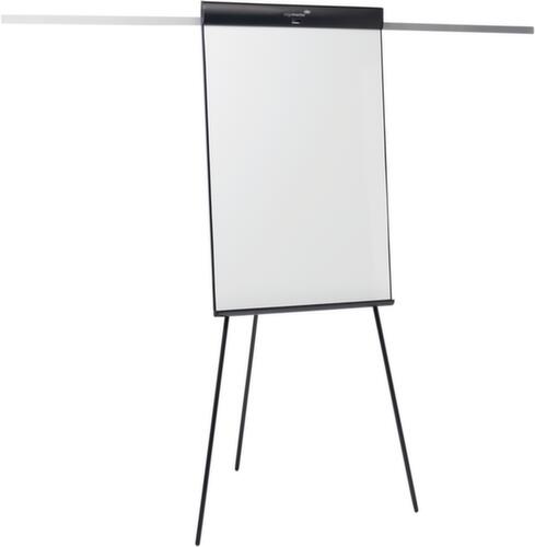 De belangrijkste maten van de Legamaster flipover SKETCH PRO in één oogopslag:bordoppervlak met lak - voordelig alternatief voor licht gebruik, ideaal voor kortstondige notities (het juiste onderhoud speelt hier een grote rol). oppervlak: magnetisch, beschrijfbaar en droog afneembaar voor herhaaldelijk gebruik. Het bord is kostenbesparend, omdat het zonder papier kan worden gebruikt. bord van staal in wit. De flipover is voor iedereen te gebruiken, ongeacht de lichaamslengte, omdat hij traploos in hoogte verstelbaar is. Met de papierklem zijn alle standaard flipoverblokken heel eenvoudig te bevestigen. De metalen klem is met één hand volledig te openen en de haken zijn verschuifbaar om de gewenste afstand in te stellen. In de blokhouder passen schrijfblokken met maximaal 50 vel. De 2 uittrekbare zijarmen zijn magnetisch en zorgen voor een groter presentatievlak om tekstbladen, presentatiemateriaal, plannen of andere grote documenten te presenteren.