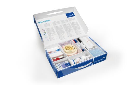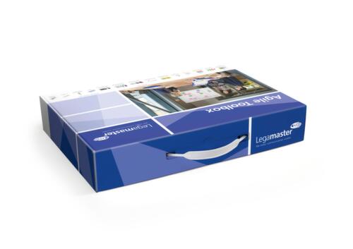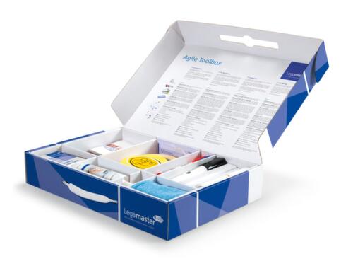 1 agile-tool met magneten en presentatieaccessoires, 1 schrijfset met 12 whiteboardstiften in verschillende kleuren en streepbreedtes en 1 reinigingsset
