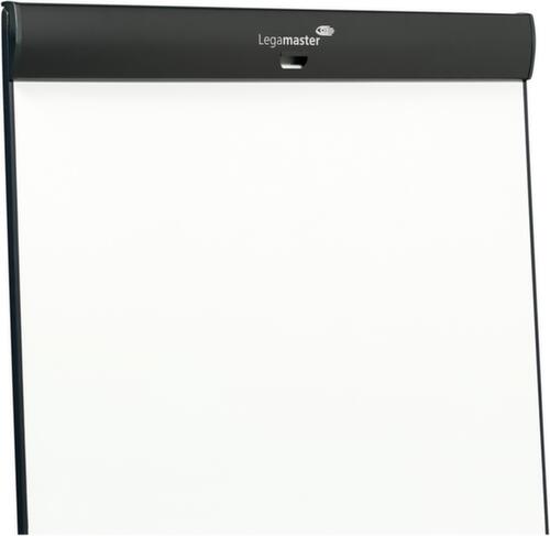De belangrijkste maten van de Legamaster flipover SKETCH PRO in één oogopslag:bordoppervlak met lak - voordelig alternatief voor licht gebruik, ideaal voor kortstondige notities (het juiste onderhoud speelt hier een grote rol). oppervlak: magnetisch, beschrijfbaar en droog afneembaar voor herhaaldelijk gebruik. Het bord is kostenbesparend, omdat het zonder papier kan worden gebruikt. bord van staal in wit. De flipover is voor iedereen te gebruiken, ongeacht de lichaamslengte, omdat hij traploos in hoogte verstelbaar is. Met de papierklem zijn alle standaard flipoverblokken heel eenvoudig te bevestigen. De metalen klem is met één hand volledig te openen en de haken zijn verschuifbaar om de gewenste afstand in te stellen. In de blokhouder passen schrijfblokken met maximaal 50 vel. De 2 uittrekbare zijarmen zijn magnetisch en zorgen voor een groter presentatievlak om tekstbladen, presentatiemateriaal, plannen of andere grote documenten te presenteren.