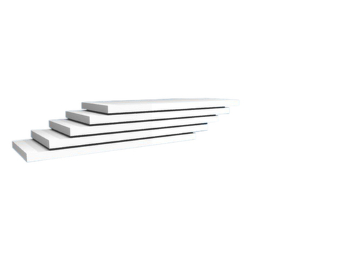 De belangrijkste maten van de hofe van de hofe legbord-magazijnstelling in één oogopslag:3-voudige veiligheidsrand van 40 mm hoog en gesloten hoeken zorgt voor hoge stabiliteit en bescherming tegen verwondingen. constructie van staal, niveaus verzinkt met kunststof coating in RAL7035 lichtgrijs.