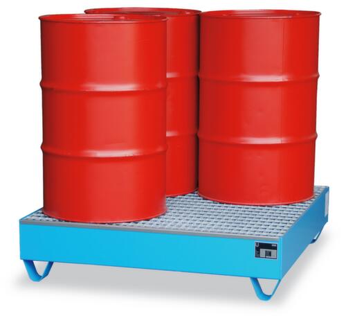 "description": "v. 4x200l vat, opvangvol. 222l, HxBxD 250x2400x800mm, m. rooster, staal, RAL 5012",