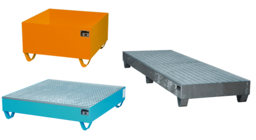 "longDescription": "<h2>Lekbak</h2><strong>voor veilige opslag onder dak</strong><br><ul><li>Geschikt voor waterverontreinigende en ontvlambare stoffen</li><li>Robuuste plaatstalen constructie</li><li>Geschikt voor vorkheftruckvervoer dankzij praktische onderrijhoogte</li></ul><br><h3>Je hebt de keuze:</h3><ul><li>Duurzaam of opvallend - oppervlakte thermisch verzinkt of met gekleurde verfafwerking</li><li>Voor nog meer opvangvolume, optioneel met uitneembaar rooster</li></ul><br><strong>Bepalingen!</strong><br>Model van de opvangbakken officieel toegelaten. Te gebruiken voor aquatoxische en ontvlambare stoffen voor opslag onder dak.<br>",