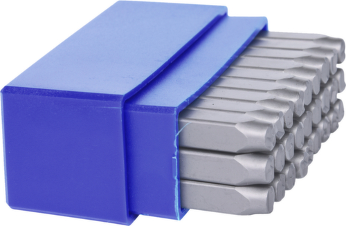 "longDescription": "Belettering volgens DIN 1451, letters \"A - Z\", voor het inhameren in materialen tot 100 kp / mm² sterkte, vierkante schacht, beletteringshoogte 5 - 6mm, scherp gegraveerd, in kunststof doos<br>",