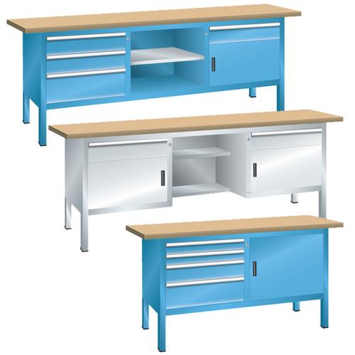 "title": "LISTA Werkbank met laden en kasten, 2 laden, 2 kasten, RAL 5012 lichtblauw/RAL 5012 lichtblauw",