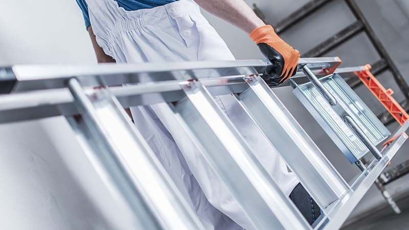 Dit punt geldt vooral voor ladders. Trapladders moeten altijd volledig worden uitgeklapt om de stabiliteit en standvastigheid te waarborgen. Voor aanleunladders hangt dit af van de installatiehoek en het steunvlak. Indien u meer informatie wenst, aarzel dan niet om contact met ons op te nemen. Wij geven u graag advies!