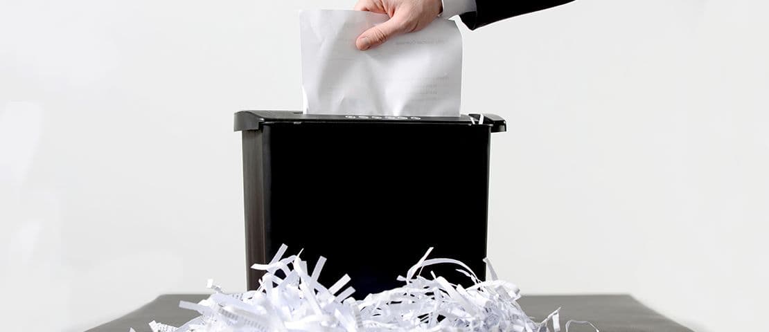 Bij het weggooien van persoonlijke documenten is het wettelijk verplicht deze niet in de papiercontainer weg te gooien. Het risico van misbruik van gegevens is te groot. Verwijder uw persoonlijke documenten op een professionele en DSGV-conforme manier met een papiervernietiger. De zeven in DIN 66399 gespecificeerde veiligheidsniveaus moeten in acht worden genomen. Volgens de DSGVO moet een papiervernietiger voor de verwijdering van persoonsgegevens een veiligheidsniveau van ten minste P4 of hoger hebben. Vanaf dit veiligheidsniveau worden documenten versnipperd tot kleine deeltjes in plaats van stroken, waardoor het vrijwel onmogelijk wordt het origineel terug te vinden.