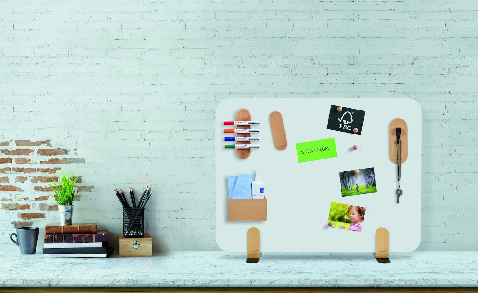 Bij duurzaamheid telt elk detail. Daarom heeft Legamaster WOODEN ontwikkeld, een assortiment duurzame houten accessoires voor whiteboards, glasborden en prikborden, waarbij alle houten onderdelen afkomstig zijn uit duurzame bosbouw en FSC-gecertificeerd zijn.