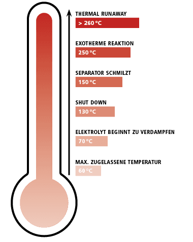 Hoog risico als een lithium-ion-accu of -batterij zijn opgeslagen energie ongecontroleerd vrijgeeft - gevaarlijke warmteontwikkeling!