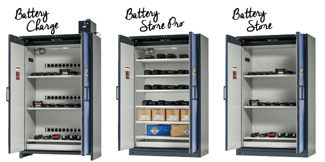 De modellen BATTERY STORE PRO en BATTERY CHARGE zijn bovendien uitgerust met een drietraps waarschuwings- en brandbestrijdingssysteem. Dat wil zeggen: ideale bescherming tijdens opslag en vooral tijdens onbeheerd opladen.