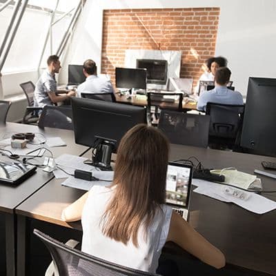 In kantoren is het raadzaam een bureaustoel te kiezen met een beklede zitting en rugleuning die met stof is overtrokken. Het permanent contact-, wip- of synchroonmechanisme en de armleuningen zorgen voor een comfortabele zithouding. Vanwege de vaak lange zitperiodes is comfort van bijzonder belang.