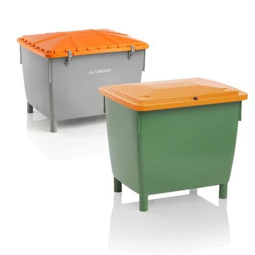 Afhankelijk van uw keuze hebben de strooizoutbakken een inhoud van 210 - 2200 liter en zijn ze verkrijgbaar met of zonder afvoeropening. Bovendien kunt u kiezen tussen de containerkleuren groen of grijs en het bijpassende deksel in oranje. Om ervoor te zorgen dat alle locaties, zoals stations, luchthavens, wooncomplexen, scholen, benzinestations, gemeenten, bedrijfsterreinen en nog veel meer, over de juiste oplossing beschikken, biedt UDOBÄR naast bakken van hogedrukpolyethyleen (HDPE) ook bakken van glasvezelversterkte kunststof (GVK) aan.