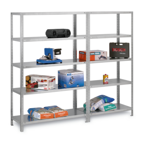 de belangrijkste maten van de hofe magazijnstelling in één oogopslag:7 niveaus met Stalen bodem. 3-voudige veiligheidsrand van 40 mm hoog en gesloten hoeken zorgt voor hoge stabiliteit en bescherming tegen verwondingen. vakhoogtes zijn afhankelijk van het doel en uw behoeften verstelbaar in stappen van 25 mm. gebruik eenzijdig - ontworpen voor plaatsing tegen een wand. constructie van staal, staanders met corrosiebeschermende zinklaag, niveaus met corrosiebeschermende zinklaag.