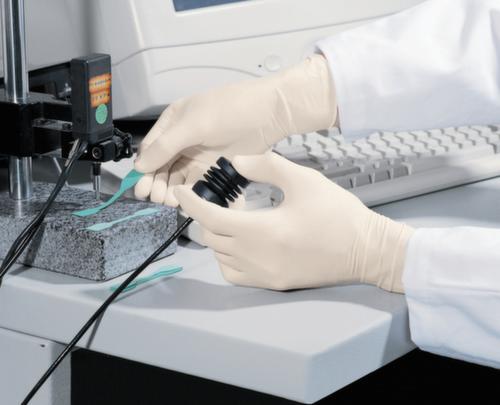 "longDescription": "<h2>Latex wegwerphandschoen</h2><strong>Kortstondige bescherming voor gevoelig werk</strong><br><ul><li>Beschermt uw handen en het voorwerp</li><li>Vergemakkelijkt nauwkeurig werken dankzij de aangename elasticiteit</li><li>Snel klaar voor gebruik - kan aan beide kanten gedragen worden</li><li>Gemakkelijk aan en uit te trekken door de lichte poedering aan de binnenkant</li></ul>",