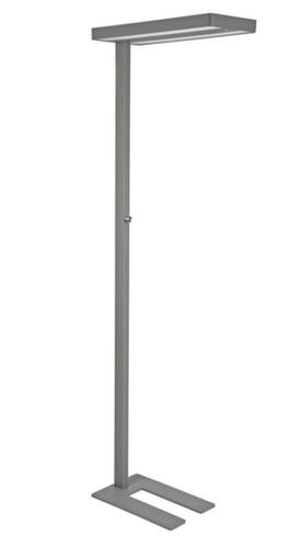 lampenkop met ca. 50% straling naar boven en onder en diffusor voor geringe schaduwwerking. hoogte 1960 mm, lampenkop lengte x breedte 610 x 280 mm, voet lengte x breedte 450 x 300 mm, met uitsparing voor tafelpoot. van aluminium in zilverkleurig. kabel 2,5 m lang.