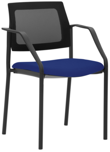 "metaDescription": "Mayer Sitzmöbel Stapelbare stoel myPLANO met armleuningen, zitting stof (100% polyester), middenblauw - 4voeten zwart, m. armleuningen, zitting stof middenblauw, netrug zwart",