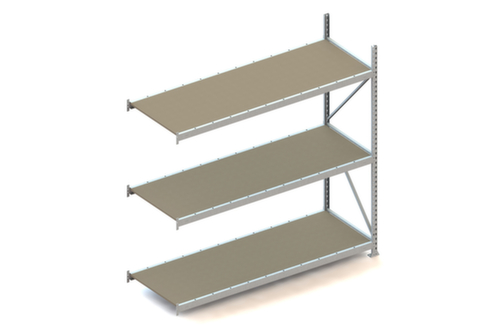 de belangrijkste maten van de META breedvakstelling MINI-RACK in één oogopslag:3 niveaus met houten vloer. niveaus met versteviging door dwarsprofielen. verhoogde stabiliteit, want elk vak heeft een dwarsprofiel in het midden. vakhoogtes zijn afhankelijk van het doel en uw behoeften verstelbaar in stappen van 50 mm. gebruik eenzijdig - ontworpen voor plaatsing tegen een wand. constructie van staal, staanders met corrosiebeschermende zinklaag, traversen met corrosiebeschermende zinklaag. staander met voetplaat (vastschroefbaar).