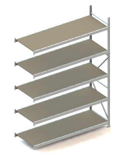 de belangrijkste maten van de META breedvakstelling MINI-RACK in één oogopslag:5 niveaus met houten vloer. niveaus met versteviging door dwarsprofielen. verhoogde stabiliteit, want elk vak heeft een dwarsprofiel in het midden. vakhoogtes zijn afhankelijk van het doel en uw behoeften verstelbaar in stappen van 50 mm. gebruik eenzijdig - ontworpen voor plaatsing tegen een wand. constructie van staal, staanders met corrosiebeschermende zinklaag, traversen met corrosiebeschermende zinklaag. staander met voetplaat (vastschroefbaar).