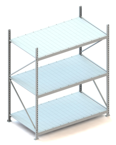 de belangrijkste maten van de META breedvakstelling MINI-RACK in één oogopslag:3 niveaus met stalen panelen. niveaus met versteviging door dwarsprofielen. verhoogde stabiliteit, want elk vak heeft een dwarsprofiel in het midden. vakhoogtes zijn afhankelijk van het doel en uw behoeften verstelbaar in stappen van 50 mm. gebruik eenzijdig - ontworpen voor plaatsing tegen een wand. constructie van staal, staanders met corrosiebeschermende zinklaag, niveaus met corrosiebeschermende zinklaag, traversen met corrosiebeschermende zinklaag. staander met voetplaat (vastschroefbaar).