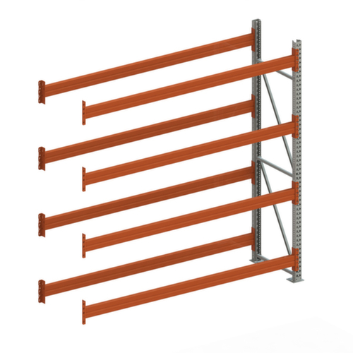 de belangrijkste maten van de META breedvakstelling Multipal S in één oogopslag:4 niveaus met traversen. vakhoogtes zijn afhankelijk van het doel en uw behoeften verstelbaar in stappen van 50 mm. gebruik eenzijdig - ontworpen voor plaatsing tegen een wand. constructie van staal. staanders met corrosiebeschermende zinklaag. traversen met slag- en krasvaste poedercoating in RAL2001 roodoranje.
