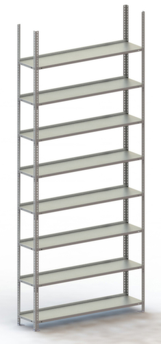 De belangrijkste maten van de META dossierstelling in één oogopslag:Op 8 niveau(s) met legborden van hoogwaardig plaatstaal / 8 ordnerhoogtes kunt u dossiers, ordners en overig kantoormateriaal optimaal ordenen. vakhoogtes zijn afhankelijk van het doel en uw behoeften verstelbaar in stappen van 25 mm. niveaus met aanslagrand aan achterzijde om te voorkomen dat ordners eruit vallen. M-vormige langsdragers met 5-voudige afkanting zorgen voor hoge stabiliteit en bescherming tegen verwondingen. gebruik eenzijdig - ontworpen voor plaatsing tegen een wand. constructie van staal, staanders verzinkt met slag- en krasbestendige poedercoating in RAL7035 lichtgrijs, niveaus verzinkt met slag- en krasbestendige poedercoating in RAL7035 lichtgrijs.