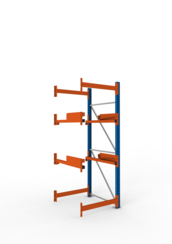 de belangrijkste maten van de META kabelhaspelstelling MULTIPAL in één oogopslag:2 niveaus met kabelhaspelsteun. niveaus met rails aan de bomen voor het invoerden van de haspelhouder. Zeer stabiel dankzij diagonaal- en horizontaalschoren. constructie van staal, staanders met slijtvaste kunststof coating in RAL5010 gentiaanblauw, niveaus met slijtvaste kunststof coating in RAL2001 roodoranje.