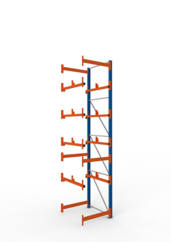 de belangrijkste maten van de META kabelhaspelstelling MULTIPAL in één oogopslag:4 niveaus met kabelhaspelsteun. niveaus met geleidehulzen aan de bomen voor haspelhouder. Zeer stabiel dankzij diagonaal- en horizontaalschoren. constructie van staal, staanders met slijtvaste kunststof coating in RAL5010 gentiaanblauw, niveaus met slijtvaste kunststof coating in RAL2001 roodoranje.