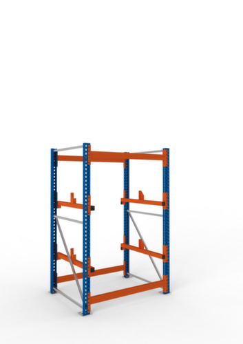 de belangrijkste maten van de META kabelhaspelstelling MULTIPAL in één oogopslag:2 niveaus met kabelhaspelsteun. niveaus met geleidehulzen aan de bomen voor haspelhouder. Zeer stabiel dankzij diagonaal- en horizontaalschoren. constructie van staal, staanders met slijtvaste kunststof coating in RAL5010 gentiaanblauw, niveaus met slijtvaste kunststof coating in RAL2001 roodoranje.