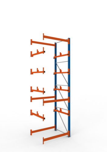de belangrijkste maten van de META kabelhaspelstelling MULTIPAL in één oogopslag:4 niveaus met kabelhaspelsteun. niveaus met geleidehulzen aan de bomen voor haspelhouder. Zeer stabiel dankzij diagonaal- en horizontaalschoren. constructie van staal, staanders met slijtvaste kunststof coating in RAL5010 gentiaanblauw, niveaus met slijtvaste kunststof coating in RAL2001 roodoranje.