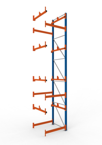 de belangrijkste maten van de META kabelhaspelstelling MULTIPAL in één oogopslag:4 niveaus met kabelhaspelsteun. niveaus met geleidehulzen aan de bomen voor haspelhouder. Zeer stabiel dankzij diagonaal- en horizontaalschoren. constructie van staal, staanders met slijtvaste kunststof coating in RAL5010 gentiaanblauw, niveaus met slijtvaste kunststof coating in RAL2001 roodoranje.