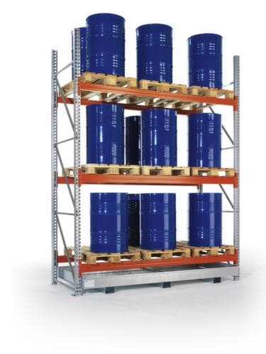 "title": "META Palletstelling MULTIPAL voor vaten en KTC/IBC voor 6 pallets, 2395 mm breed, 3 opslagniveaus",