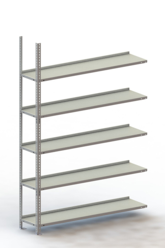 De belangrijkste maten van de META dossierstelling in één oogopslag:Op 5 niveau(s) met legborden van hoogwaardig plaatstaal / 5 ordnerhoogtes kunt u dossiers, ordners en overig kantoormateriaal optimaal ordenen. vakhoogtes zijn afhankelijk van het doel en uw behoeften verstelbaar in stappen van 25 mm. niveaus met aanslagrand aan achterzijde om te voorkomen dat ordners eruit vallen. M-vormige langsdragers met 5-voudige afkanting zorgen voor hoge stabiliteit en bescherming tegen verwondingen. gebruik eenzijdig - ontworpen voor plaatsing tegen een wand. constructie van staal, staanders met corrosiebeschermende zinklaag, niveaus met corrosiebeschermende zinklaag.