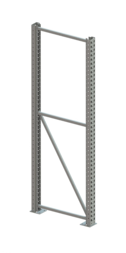 de belangrijkste maten van de META zelfbouw-palletstelling in één oogopslag:opslag dwars. gebruik eenzijdig - ontworpen voor plaatsing tegen een wand. constructie van staal. staanders met corrosiebeschermende zinklaag.