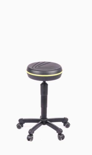 "description": "zitting HxØ 455-580x330mm, PU-schuim-ronde zitting zwart, frame staal zwart, 5zwenkwielen",