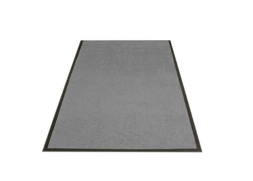 De belangrijkste afmetingen in één oogopslag:loopvlak van polypropyleen in lichtgrijs. rug van vinyl. oppervlak met gesloten oppervlak. bestendig tegen vuil en vocht. functies: antislip. Dankzij de 20 mm brede rand rondom ligt de mat snel vlak en stevig op elke vloer.