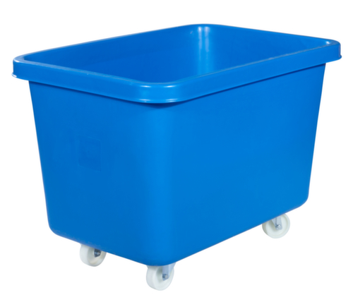 van slagvast polyethyleen in blauw. De opgeslagen goederen zijn door de gesloten wanden beschermd tegen stof en de bak is gemakkelijk te reinigen. legbord gesloten met versteviging door multiplex plaat. Wielen maken het transport eenvoudig. Plaatsbesparend stapelbaar. geschikt voor levensmiddelen. temperatuurbestendig van -40 tot +80 °C.