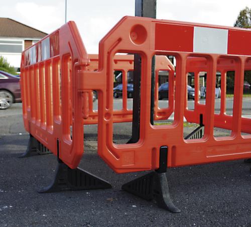 "longDescription": "<h2>Dranghek</h2><strong>waarschuwingseffect voor bouwplaatsen, straten en manifestaties</strong><br><ul><li><strong>minder risico op struikelen</strong> - standvoeten aan de voetgangerszijde zijn verkort</li><li><strong>ruimtebesparend transport</strong> dankzij zijwaarts draaibare standvoeten</li><li><strong>eindeloze montage door haak- en oog-principe</strong></li><li><strong>signaalwerking</strong> - in waarschuwingskleur met reflecterende strepen</li><li><strong>Uiterst resistent</strong> - gemaakt van hogedruk polyethyleen (HDPE)</li></ul>",