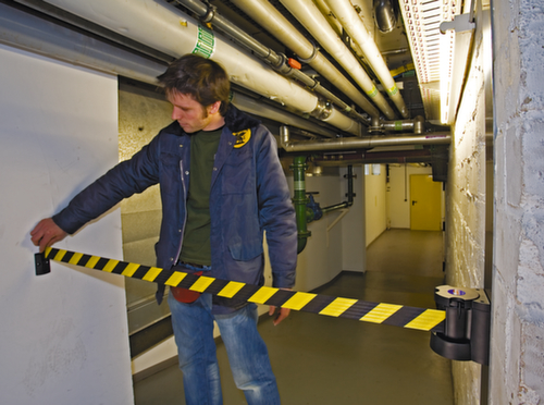 "longDescription": "<h2>Muurband</h2><strong>voor tijdelijke blokkering in verschillende richtingen</strong><br><ul><li>In alle richtingen - de riemcassette kan in 3 posities worden vastgezet, zodat de riem ook zijwaarts kan worden uitgetrokken</li><li>Gecontroleerde riemterugloop door geïntegreerde centrifugaalrem</li><li>Robuuste muurbeugel - gemaakt van ABS</li></ul><br><h3>Je hebt de keuze:</h3><ul><li>Flexibel of stationair - magnetische bevestiging of opschroefbare bevestiging.</li></ul><br><h3>Bestel direct:</h3><ul><li>Vaste verbinding met de muur - muurclip voor bevestiging van de riem.</li><li>Verlengde barrière - riemverbinder</li></ul>",