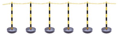 "longDescription": "<h2>Set kettingstaanders</h2><strong>complete mobiele set voor snel afzetten</strong><br><ul><li><strong>set bestaande uit:</strong> 6 kettingpalen, 10 m ketting, 10 verbindingsschakels, 10 inhanghaken</li><li>met geïntegreerde kettinghouder</li><li><strong>licht en ongevoelig</strong> - paal van kunststof</li></ul><br><h3>De keuze is aan jou:</h3><ul><li><strong>voor elk doel de juiste voet</strong> - driehoekig van kunststof met beton gevuld, rond van kunststof en vulbaar of vierkant van hard rubber</li></ul><br>De kettingstandaardset is perfect geschikt voor een eenvoudige en snelle mobiele afzetting. Met de meegeleverde 6 kettingstatieven, 10 m ketting, 10 verbindingsschakels en 10 haken kan elk gebied worden afgezet. Dankzij de hoogte van 870 mm is de barrière altijd duidelijk zichtbaar voor automobilisten en voetgangers. <br><br>De kunststof palen hebben een diameter van 40 mm en zijn verkrijgbaar in de kleurencombinaties rood/wit of geel/zwart, waardoor een extra signaalwerking ontstaat. Bovendien hebben de kettingsteunen een geïntegreerde kettinghouder. De stands moeten op een afstand van maximaal 2 m worden geplaatst. Afhankelijk van het beoogde gebruik, kunt u kiezen tussen verschillende voetontwerpen.<br>",