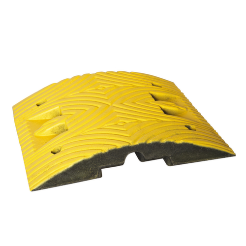 "longDescription": "<h2>Snelheids hobbel</h2><strong>gemaakt van milieuvriendelijk gerecycleerd materiaal</strong><br><ul><li>Ideaal voor scholen of in gecontroleerde gebieden - dwingt langzaam rijden af</li><li>Optimale signaalwerking - direct zichtbaar in het donker dankzij geïntegreerde reflectoren</li><li>Slipvast door antislipprofiel</li><li>Duurzaam - gemaakt van zeer sterk gerecycled rubbercompound met geprofileerd oppervlak</li><li>Modulair systeem met eenvoudige montage dankzij pen- en groefverbinding</li><li>Meer stabiliteit - extra verlijming van de elementen wordt aanbevolen voor zwaar verkeer</li></ul><br>Direct bestellen<br><ul><li>Wegankers voor bevestiging - 4 ankers zijn vereist per basiselement en 2 ankers zijn vereist per eindelement</li></ul><br>Vooral voor scholen en kleuterscholen, maar ook op bedrijfsterreinen, laadplaatsen en parkeerplaatsen doet de verkeersdrempel goed zijn werk. De verkeersdrempel regelt het verkeer op een betrouwbare manier, omdat hij selectief wordt gebruikt. Het verkeersdrempelsysteem dwingt een aangepaste rijstijl voor motorvoertuigen af. Het zorgt ervoor dat een bepaalde snelheid niet wordt overschreden. Optioneel beperken de verkeersdrempels de snelheid tot 5 km/u of 20 km/u. De verkeersdrempels zijn dus een doeltreffende oplossing met lage investeringskosten. <br><br>De verkeersdrempels worden in het bouwlaadsysteem gemonteerd met een pen- en gatverbinding. U kiest het aantal basiselementen om de gewenste lengte te verkrijgen. Vergeet de bijpassende eindelementen niet! Deze dienen ter bescherming van voetgangers en fietsers, zodat zij niet struikelen en vallen.<br><br>In opvallende contrasterende kleuren is de verkeersdrempel gemakkelijk te herkennen. Bovendien zijn de basiselementen voorzien van kattenogen, zodat de verkeersdrempel ook in het donker niet over het hoofd wordt gezien. Het materiaal is robuuste en milieuvriendelijke gerecycleerde kunststof, waarvan het oppervlak een antislip- en antislipprofiel heeft.<br><br>De verkeersdrempel is gemakkelijk te installeren. U kunt de bijpassende wegankers bij ons als accessoires krijgen. Het is het beste om ze direct te bestellen! Voor een stevige bevestiging heeft u 4 grondankers nodig voor een basiselement en 2 voor een eindelement. Als de dwarsligger wordt gebruikt in druk verkeer, wordt aanbevolen dat de dwarsliggers<br><br><strong>Goed om te weten!</strong><br>Op rechte stukken weg moeten op bepaalde afstanden verkeersdrempels worden aangebracht.<br>",
