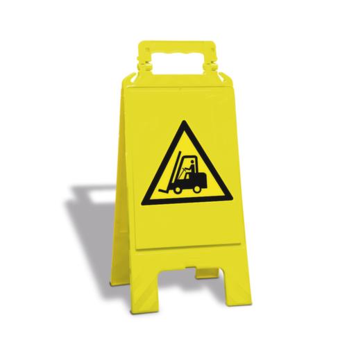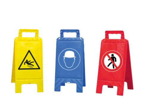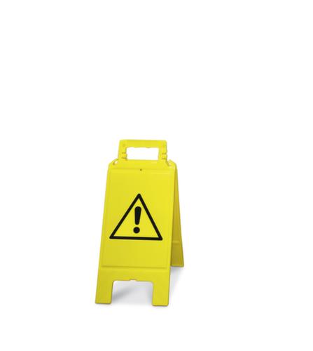 "longDescription": "<h2>Waarschuwingsbord</h2><strong>Dubbelzijdige symbolen</strong><br><ul><li><strong>voor het snel en mobiel markeren</strong> van gevaarlijke zones</li><li><strong>robuust en duurzaam</strong> - van kunststof</li><li><strong>veilig transporteren en opslaan</strong> - dichtgeklapt met clip afsluitbaar</li><li><strong>klapt niet onbedoeld dicht</strong> - in geopende toestand vergrendelbaar</li><li><strong>voor het afzetten van hele gebieden</strong> met voorziening aan de zijkant voor kunststof kettingen</li></ul><br><h3>De keuze is aan jou:</h3><ul><li><strong>gebodsborden</strong> tonen uw werknemers op gevaarlijke werkplekken welke beschermingsmiddelen ze moeten dragen</li><li><strong>waarschuwingsborden</strong> wijzen personen op een mogelijk gevaarlijke situatie</li><li><strong>verbodsborden</strong> tonen uw klanten, bezoekers en medewerkers op eenvoudige, duidelijke wijze wat niet te doen om ongevallen en schade te voorkomen</li></ul>",