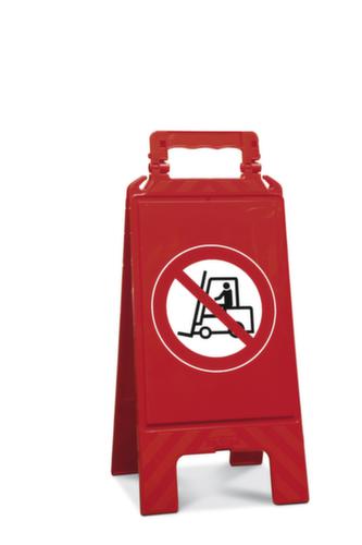 "description": "verboden voor heftrucks, vloeropsteller, kunststof, rood, HxBxD 600x275x270mm",