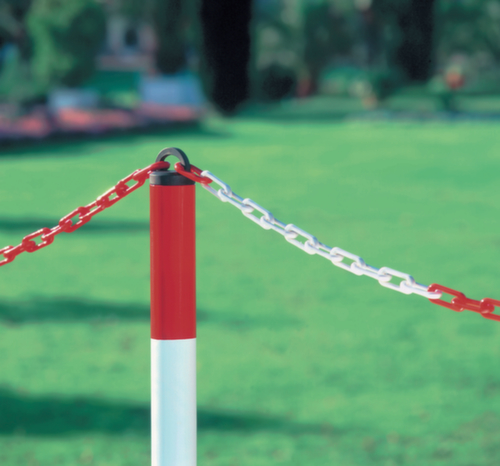 "metaDescription": "Moravia Weerbestendige afzetketting voor kettingstaander voor afzetpaal met ketting - v. afzetpaal met ketting, Ø 6mm, L 50m, nylon, rood/wit",