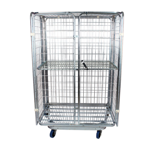 "metaTitle": "Nestbare veiligheidsrolcontainer nestainer® met dubbele openslaande deuren, draagvermogen 500 kg, lengte x breedte 800 x 1200 mm - Pakketwagen",