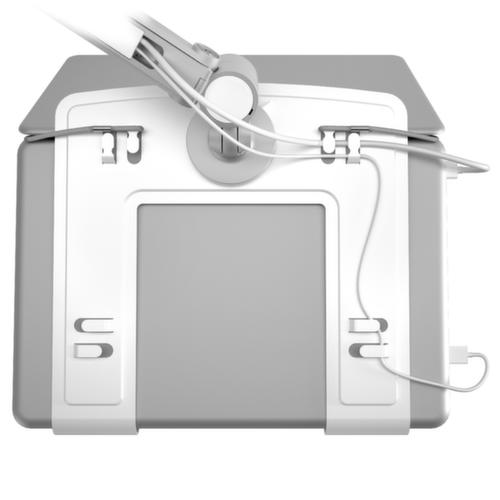 "longDescription": "<h2>Notebookhouder</h2><ul><li>Gemaakt van aluminium, recyclebaar</li><li>Kantelbaar van +90° tot -55°, zwenkbaar van +65° tot -65°, met geïntegreerde zwenkblokkade</li><li>Actieradius 360</li><li>In hoogte verstelbaar met 240 mm</li><li>VESA-systeem met snelsluiting voor eenvoudige montage van het scherm</li><li>Incl. tafelklem voor paneeldiktes tot 40 mm en met doorlopende tafelbevestiging voor paneeldiktes tot 50 mm</li><li>Belastbaar tot 7 kg</li></ul>",