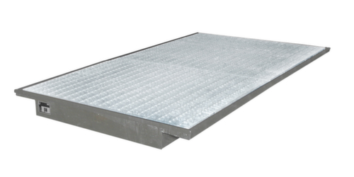 "metaDescription": "Ophangbak met rooster - opvangvol. 200l, HxBxD 140x2150x915mm, m. rooster, staal verzinkt",