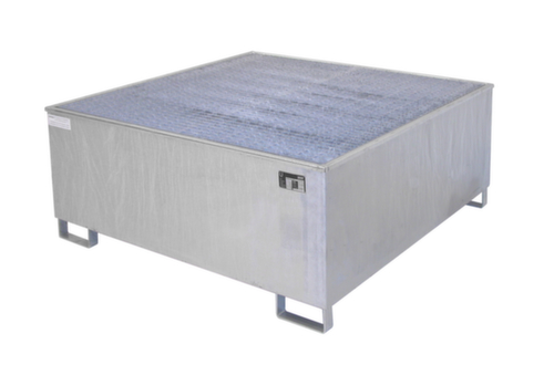 "metaDescription": "Opvangbak met PE-element en rooster, voor 4 x 200 liter vat - v. 4x200l vat, opvangvol. 211l, HxBxD 290x1215x1215mm, m. PE-element, rooster, staal verzinkt",