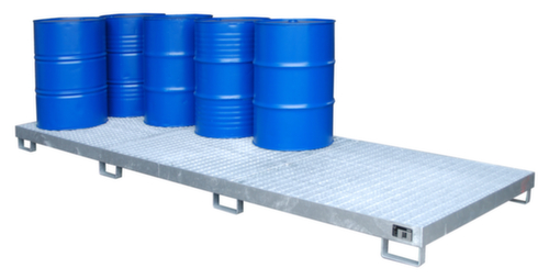 "metaDescription": "Opvangbak met rooster, voor 12 x 200 liter vat - v. 12x200l vat, opvangvol. 335l, HxBxD 200x1300x3880mm, m. rooster, staal verzinkt",