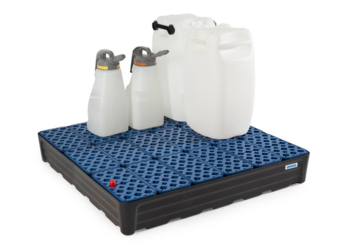 "metaDescription": "Opvangbak pro-line van PE voor kleinemballage - v. kleinemballage, opvangvol. 180l, HxBxD 180x1168x1168mm, m. lekindicator, rooster kunststof",